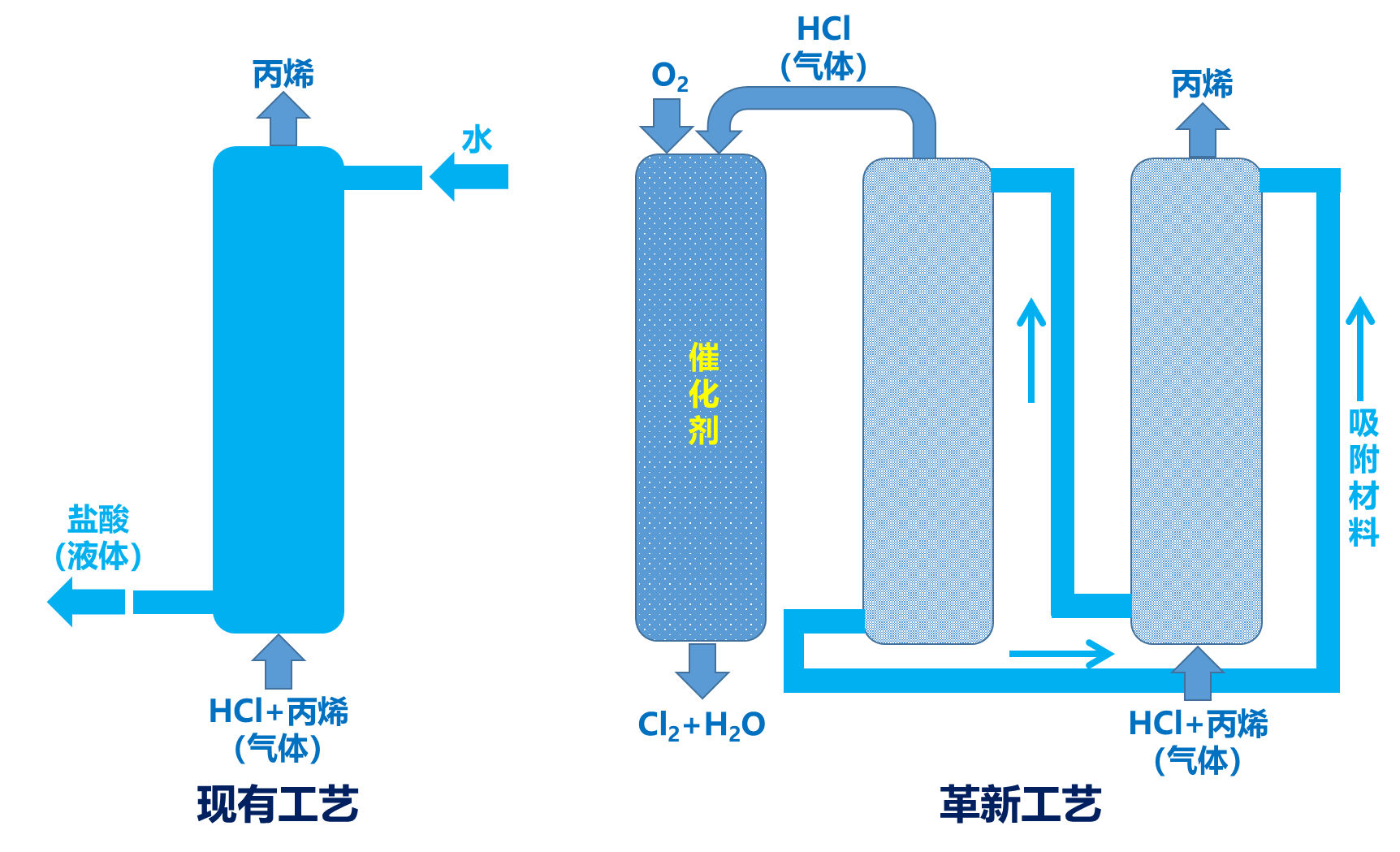 项目由中国科学院青岛生物能源与过程研究所系统集成工程中心卤素资源化学项目部牵头,开发出一套创新性的“分离-催化”一体化技术工艺。核心包括:(1)具有可逆吸附/脱附功能的新型材料,可高效从复杂混合气中分离HCl;(2)自主设计的非贵金属长寿命催化剂,在低能耗、低成本条件下实现HCl高效转化为氯气。基于核心工艺,已打通工程应用路径,形成完整解决方案。